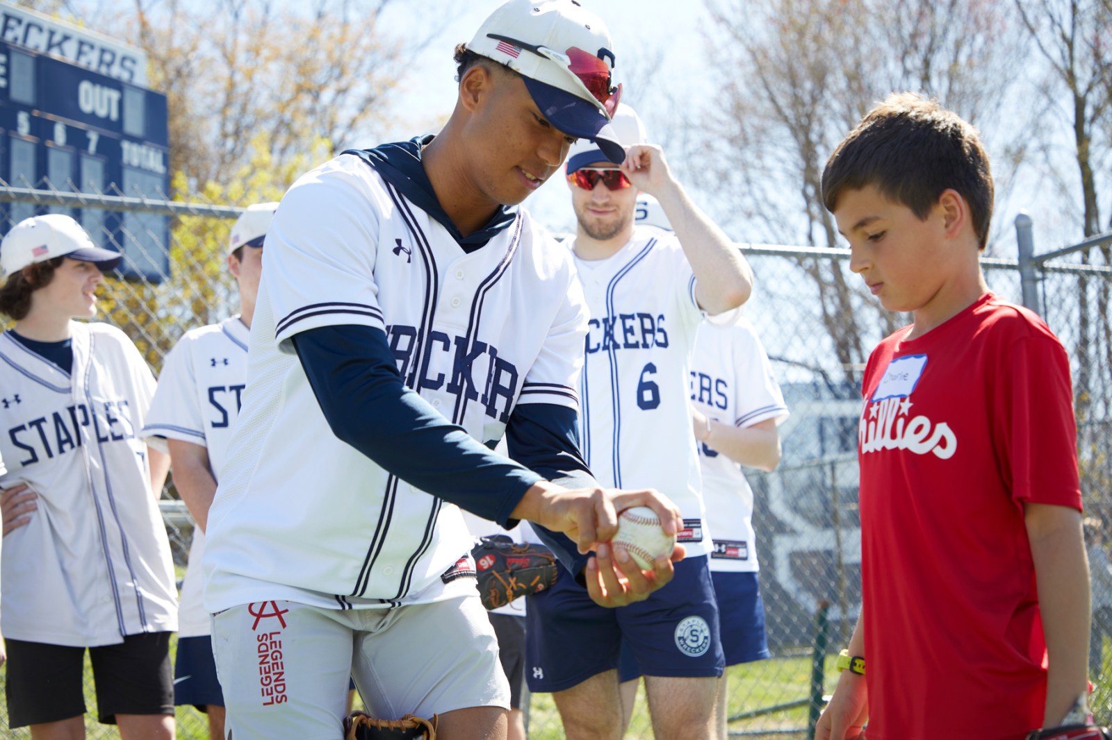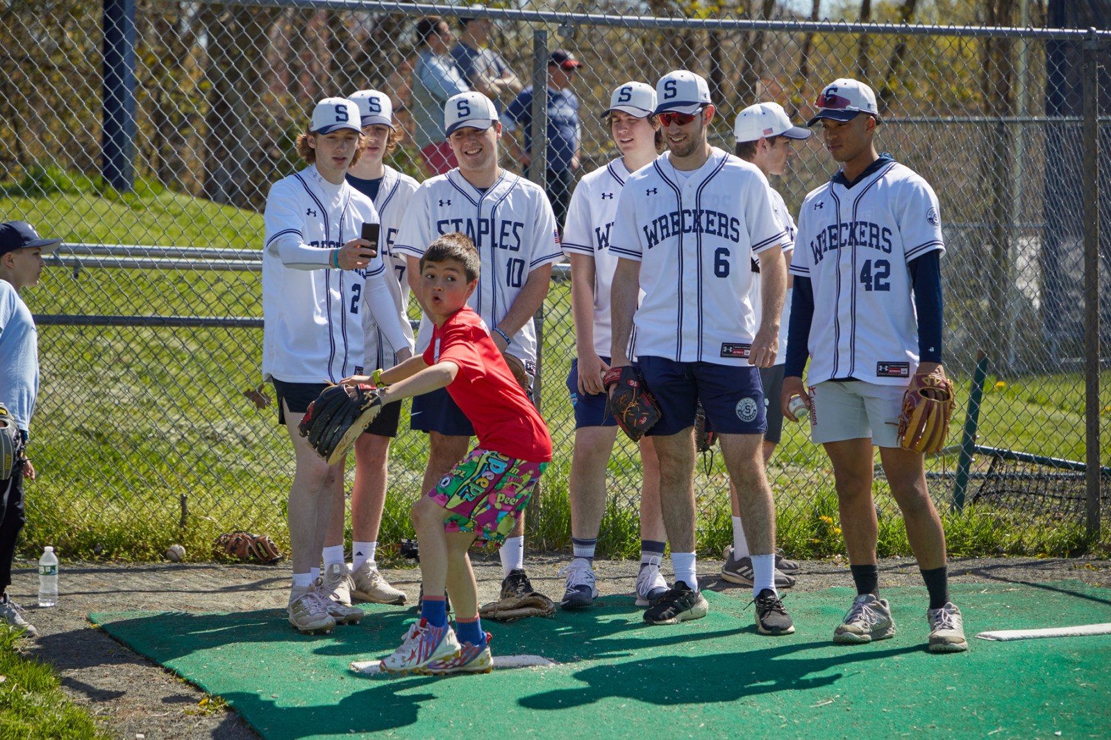Every year the Staples Baseball Diamond Club sponsors Little League Day. This is a chance for the little kids to meet the bigger kids and learn and play some baseball. Running, hitting and throwing are all showcased on this day. In the end, there is also a hotdog truck supplied by Junior’s Hot Dog Stand in Westport.